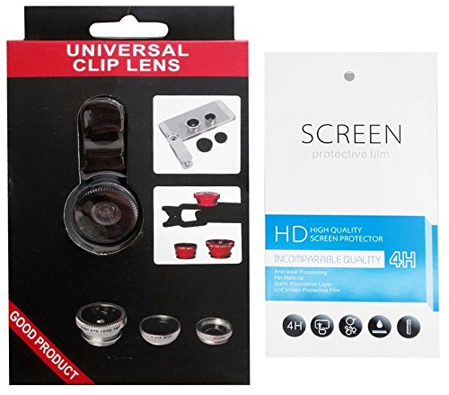 -. Title : Universal Mobile Phone Case Lenses 3 in 1 Wide Angle Macro Fish Eye Lens + 1 Clear Screen Protector for Huawei Ascend G6