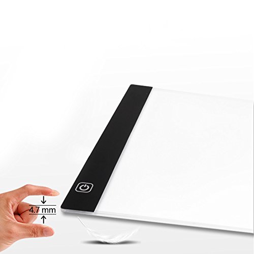 Q1: What are the dimensions? A: A4 Light Box Lighting Area: 12.2"x9.25" (A4 Model) Thickness: 0.47cm/0.18". And it is light weight yet durable at the same time, so you can bring it with you.