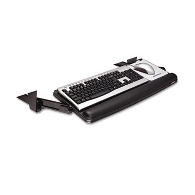 -. Binding : Office Product -. Brand : 3M -. EAN : 0021200530166 -. Feature : All-in-one keyboard tray design accommodates both keyboard and mouse with a mousing surface that can be positioned on the left or right. Includes gel wrist rest with antimicrobial product protection. / All-in-one design accommodates both keyboard and mouse with a mousing surface that can be positioned on the left or right. / Gel wrist rest with antimicrobial product protection inhibits the growth of microorganisms, such as bacteria, that can cause stains, odors and product degradation. / Leatherette wrist rest cover is more durable than fabric and easier to clean. / Preciseâ"¢ battery-saving mousing surface extends the battery life of wireless mice by up to 75%. -. Label : 3M/COMMERCIAL TAPE DIV. -. Manufacturer : 3M/COMMERCIAL TAPE DIV. -. MPN : 0 -. PackageQuantity : 1 -. PartNumber : 0 -. ProductGroup : Office Product -. ProductTypeName : OFFICE_PRODUCTS -. Publisher : 3M/COMMERCIAL TAPE DIV. -. Studio : 3M/COMMERCIAL TAPE DIV. -. Title : 3M Commercial Office Supply Div. Underdesk Keyboard Drawer, Adjust 17"L, 25"x10", CGY -. UPC : 021200530166