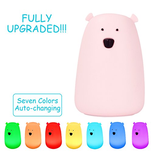 KOMIWOO Bear LED Kids Night Light - 3-Modes Soft Silicone Baby Nursery Lamp - 7 single colors mode and 7-color breathing light mode - USB charging -...
