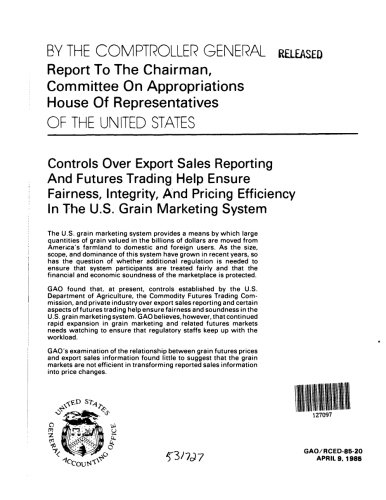 -. Title : Controls Over Export Sales Reporting and Futures Trading Ensure Fairness, Integrity, and P.R.Icing Efficiency in U.S. Grain Marketing