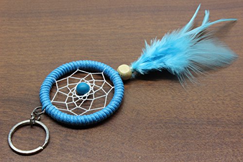 Handmade Dream Catcher - Good for Keychain, Car & Bag Hanging Ornament (Light Blue hoop with Light Blue Feathers)