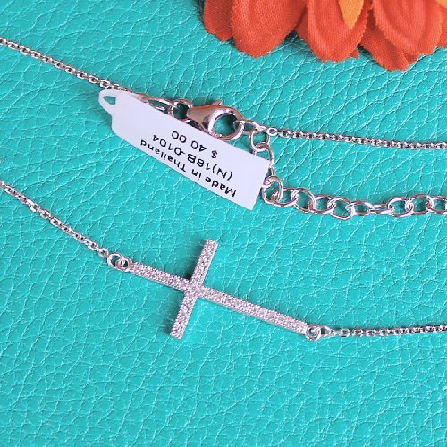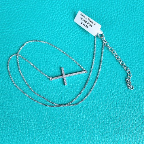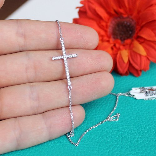 - Title : Sterling Silver & Micro Pave CZ Sideways Large Cross 16" - 18" Necklace