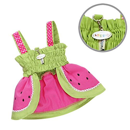 -. Binding : Misc. -. Brand : Klippo Pet -. Color : Pink -. EAN : 0721405225804 -. Feature : Made with lightweight cotton fabric with attached large D-ring for easy leash attachment! / Accented with hot pink ribbon with white polka dots on the shoulder straps and a matching bow on the back. / A small D-Ring attached near the neck area to add on a "Klippo" charm or ID tag / See pictured size chart for reference -. Label : Klippo Pet -. Manufacturer : Klippo Pet -. MPN : KDR056-L -. NumberOfItems : 1 -. PackageQuantity : 1 -. PartNumber : KDR056-L -. ProductGroup : Pet Products -. ProductTypeName : PET_SUPPLIES -. Publisher : Klippo Pet -. Size : l -. Studio : Klippo Pet -. Title : Juicy Watermelon Dog Sundress with Large D-ring for Easy Leash Attachment Sizes: Large -. UPC : 721405225804
