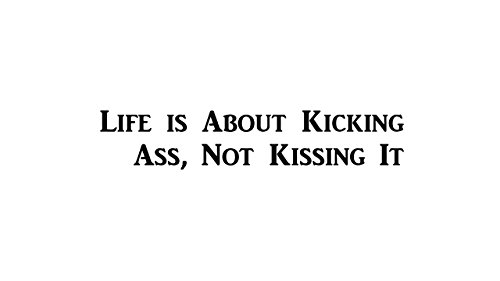 CMI399 Life is About Kicking Ass, Not Kissing It | Motivational Decal | Inspirational Decal | Funny Decal| Premium Black Vinyl Decal | 10.5" Wide By 2.15" Tall