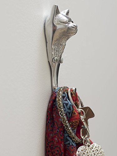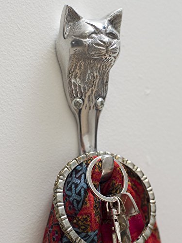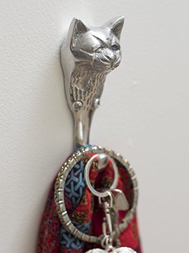 Decorative Hand Cast Aluminum Cat Single Wall Hook | Wall Mounted Hanger | For Clothes, Hats, Keys and More | Polished Finish | With Screws and Anchors - by Comfify (Cat AL-1507-34)