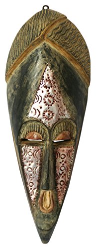 NOVICA Decorative Large Sese Wood and Aluminum Mask, Green, 'Don't Be Lazy'