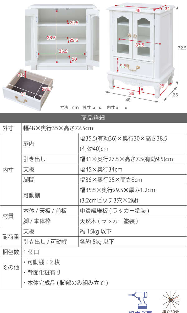 ●ガラス張りの飾り棚は可愛い小物のディスプレイとしてもお使いいただけます