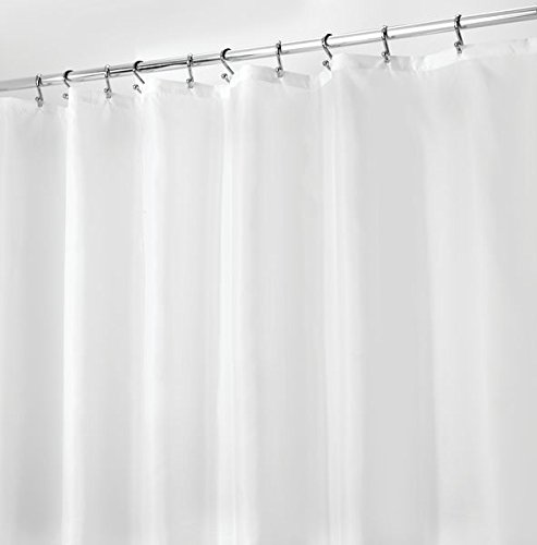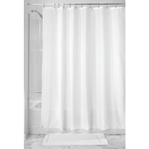 mDesign Mildew-Resistant, Water-Repellent Fabric Shower Curtain Liner with Weighted Magnetic Hem - 54" x 78", White