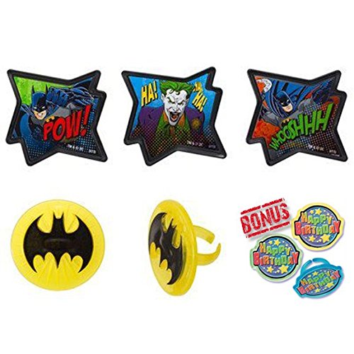 Batman Pow Whooshhh Cupcake Toppers with Bonus Birthday Ring - 25 pc