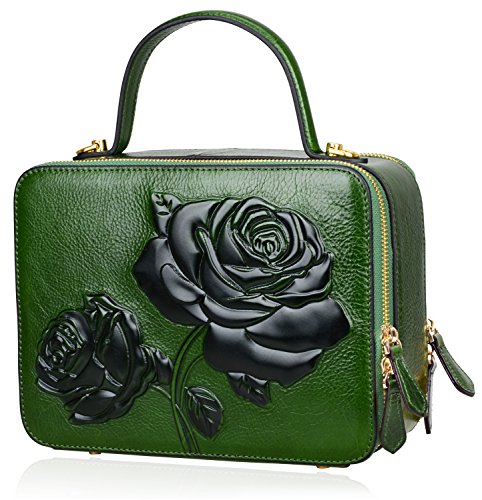100% leather :Genuine Cow Leather with Embossed Rose;