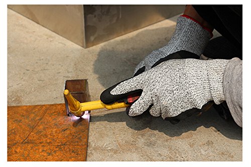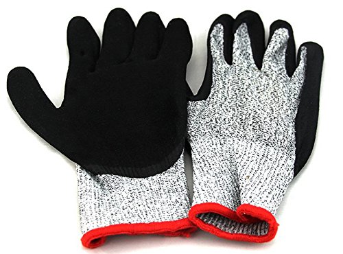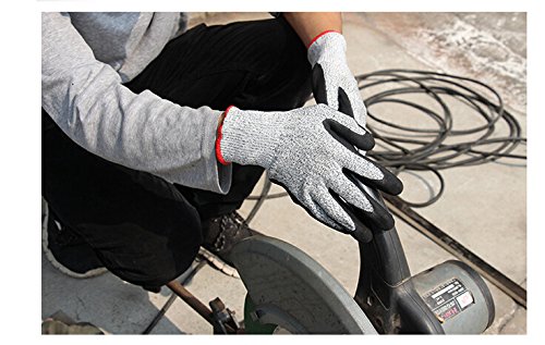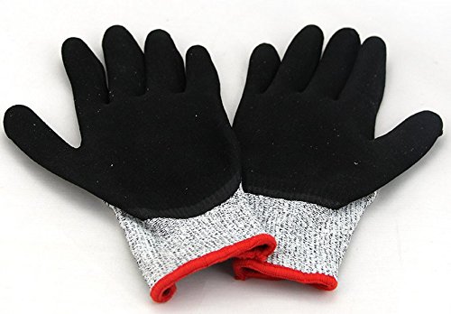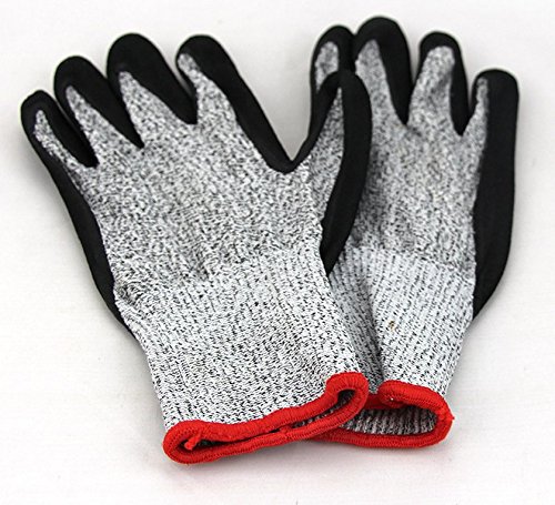 -. Feature : Product Style: Nice Cut Resistant Gloves Level 5 Glove for Cutting and Slicing Work Gloves / Item Material:HPPE +Thickening Frosted Nitrile / Perfect for slicing,oyster shucking and cutting for kitchen users,pumpkin/wood carving, carpentry / Meet CE 420 388 Certified, level 5 cut resistance standard,protecting your hands from scrapes and cuts / High polyethene performance which makes it breathable,highly elastic,lightweight and comfortable