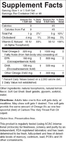 Carlson Labs Very Finest Fish Oil, Lemon, 1000mg, 240 Softgels