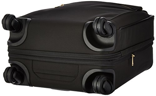 -. Feature : Zipper to zipper expansion, 4 recessed wheels, 3-stage telescoping handle, top and side carry handles, bottom grab handles, front u-zip pocket, protective bumper guards, front vertical zip pocket / Lid compartment doubles as a suitor compartment, suitor section with zip pocket, hanger bracket and bracket cover, 2 hanging flap pockets on side panels, removable and hangable pouch with waterproof compartment for swimsuit or toiletries and separate / 9x16x22