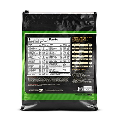 Optimum Nutrition Serious Mass Gainer Protein Powder, Chocolate, 12 Pound