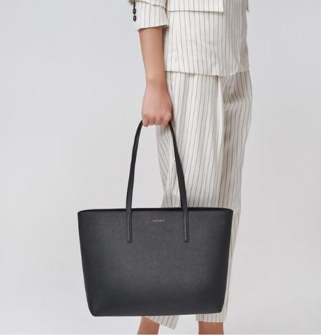 군더더기 없는 깔끔한 디자인에 골드 컬러감의 로고 장식으로 포인트를 준 쇼퍼백입니다.