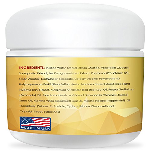 - IT’S YOUR BODY- USE THE 12 BEST PREMIUM, ALL NATURAL BUTTERS & OILS – Sarsaparilla, Arnica, Tea Tree, Ilex, Aloe Vera, Shea Butter, Avocado Oil, Spearmint Oil, Peppermint Oil, Jojoba Oil (See description below for each purpose). This hypo allergic, rich and creamy Foot Therapy harnesses the power of its ultimate ingredients to sink deep into your feet & skin, leaving you with a smooth and supple feel.