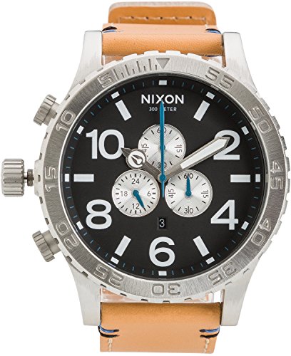 -. Feature : Nixon 51-30 Chrono Leather watch. / Men's premium watch. / Good looks, brains and brawn combined, The 51-30 Chrono rates second-to-none. / Miyota Japanese quartz 6 hand chronograph with date and a 9-hour crown and pusher placement. / Dial features 3 CD textured subdials, custom molded hands with luminous fill.