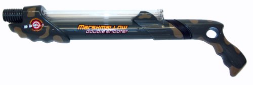 -. Binding : Toy -. Brand : Marshmallow Fun Company -. Color : Camo -. EAN : 0793631723393 -. Feature : This clever, pump-action device fires miniature marshmallows approximately 30 feet -. This shooter has two magazines that hold 25 marshmallows each ( marshmallows not included ) -. Great for outdoor and indoor play -. Top-rack, dishwasher safe to clean -. Provides a soft, hearty laugh on impact -. Join the party and pass the marshmallows, it's time to battle hard and play soft / fires mini marshmallows up to 30 feet / two magazines that hold 25 marshmallows each / Dishwasher safe. / Great gift idea -. IsAdultProduct : 0 -. IsAutographed : 0 -. Label : Marshmallow Fun Co -. Manufacturer : Marshmallow Fun Co -. Model : 1106 -. MPN : MMS1106 -. PackageQuantity : 1 -. PartNumber : MMS1106 -. ProductGroup : Toy -. ProductTypeName : TOYS_AND_GAMES -. Publisher : Marshmallow Fun Co -. ReleaseDate : 2011-12-31 -. Studio : Marshmallow Fun Co -. Title : Marshmallow Fun Co Camo Double Barrel Shooter -. UPC : 793631723393 -. Warranty : No Warranty