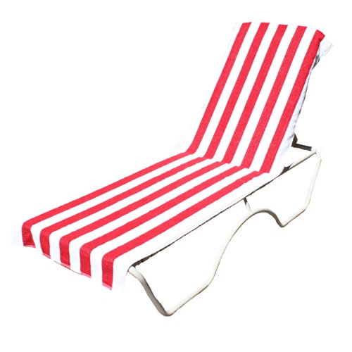 Relax with one of our terry lounge chair covers that are made from luxurious 100% cotton. Our regular size terry cloth lounge chair cover is soft, absorbent and measures 26"x82". There is also an 8" pocket that fits over the top of the lounge chair to keep the towel in place. No more dealing with the wind blowing your towel away! Available in pink, red, blue and green.
