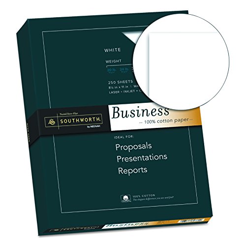 Southworth 100% Cotton Business Paper, 8.5 x 11 Inches, 32 lb, Wove finish, White, Watermarked, 250 per Box , Laset, Inket and copier compatible