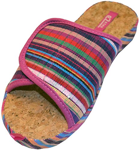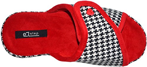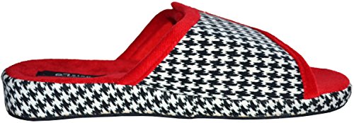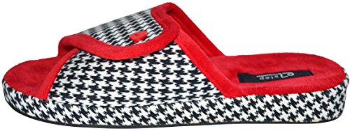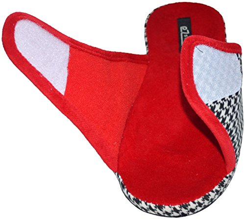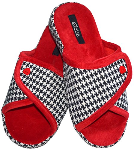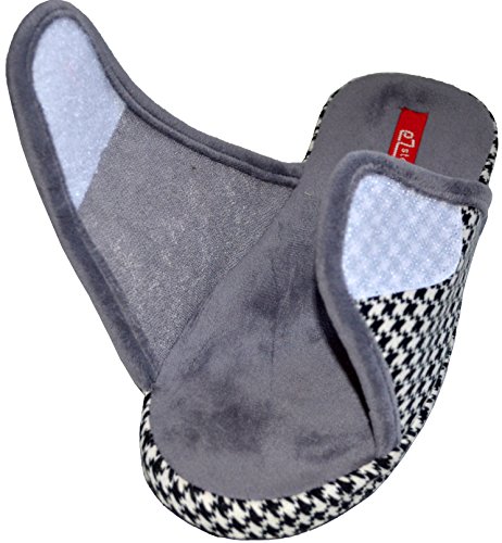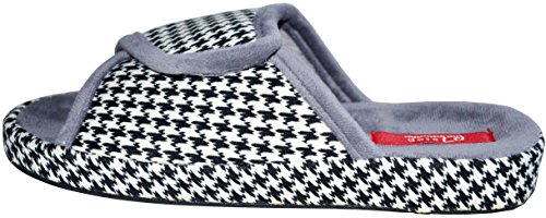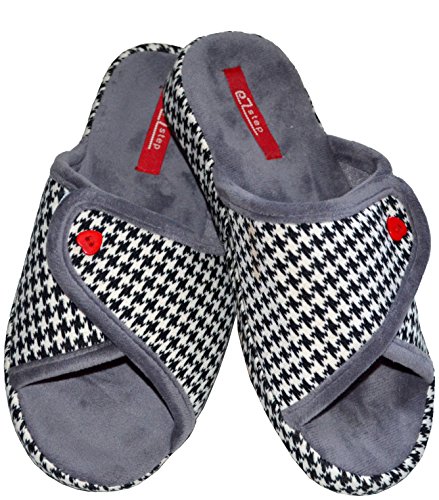 Binding : Apparel Product Description These open-toe slippers with velcro closure feature a sturdy anatomic in-sole (orthopedic sole), a soft and comfortable interior design, and a non-slip rubber sole.? Your feet will welcome the comfort that comes from slipping out of your daily shoes and into one of these adjustable width slippers.? The fashion forward houndstooth design and top velcro closure makes these slippers not only classy, but comfortable for many types of feet (bunions, bone spurs, wide feet, diabetic feet). The extra soft, adjustable width top is not constrictive. Arch support is the best part of these house slippers! The thick sole absorbs so much shock and takes away the burden from your ankles, knees, hips, as well as your spine. They'll be your favorite shoes to wear inside, outside, and everywhere. They have a trendy design that will impress your guests at home. You'll know you're looking great and keeping yourself healthy. Podiatrist and chiropractor approved! 0