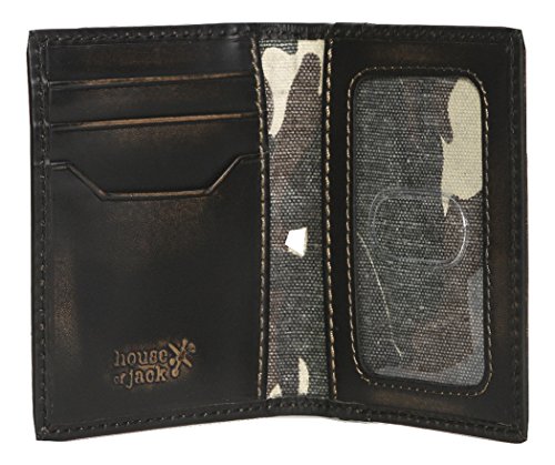 -. Binding : Apparel -. Brand : House of Jack Co. -. Department : mens -. Feature : Premium Leather with Hand Burnished Finish / 2 Exterior Card Pockets, 1 ID Window with Thumbhole, 4 Interior Card Pockets / Slim Profile Construction; Multifunction Design / Camouflage Canvas Lining / HOJ Gift Box Included -. Model : 6128-$P -. ProductGroup : Apparel -. ProductTypeName : ACCESSORY -. Title : House of Jack Co. Men's SLIMFOLD ID CARD CASE Men's Wallet - Front Pocket Wallet - Business Card Case - Slim Profile Wallet