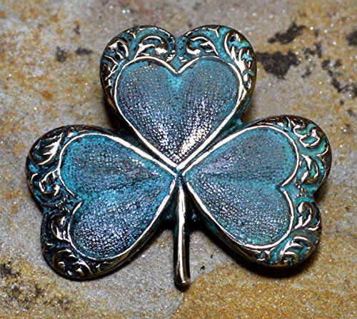 -. Title : Verdigris Patina Brass Decorative Shamrock Clover Pin