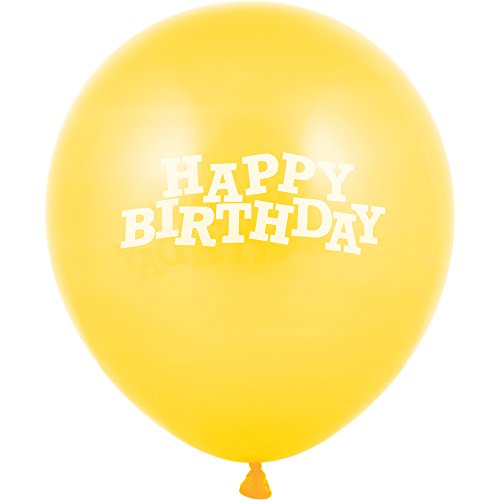 Creative Converting 15 Count Latex Balloons Printed with Happy Birthday, 12", Mimosa Yellow