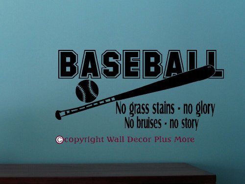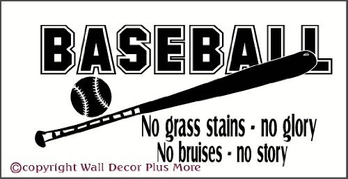 Wall Decor Plus More WDPM2928 Baseball No Grass Stains No Bruises Sports Quote Wall Decal, 23-Inch X 11-Inch, Black