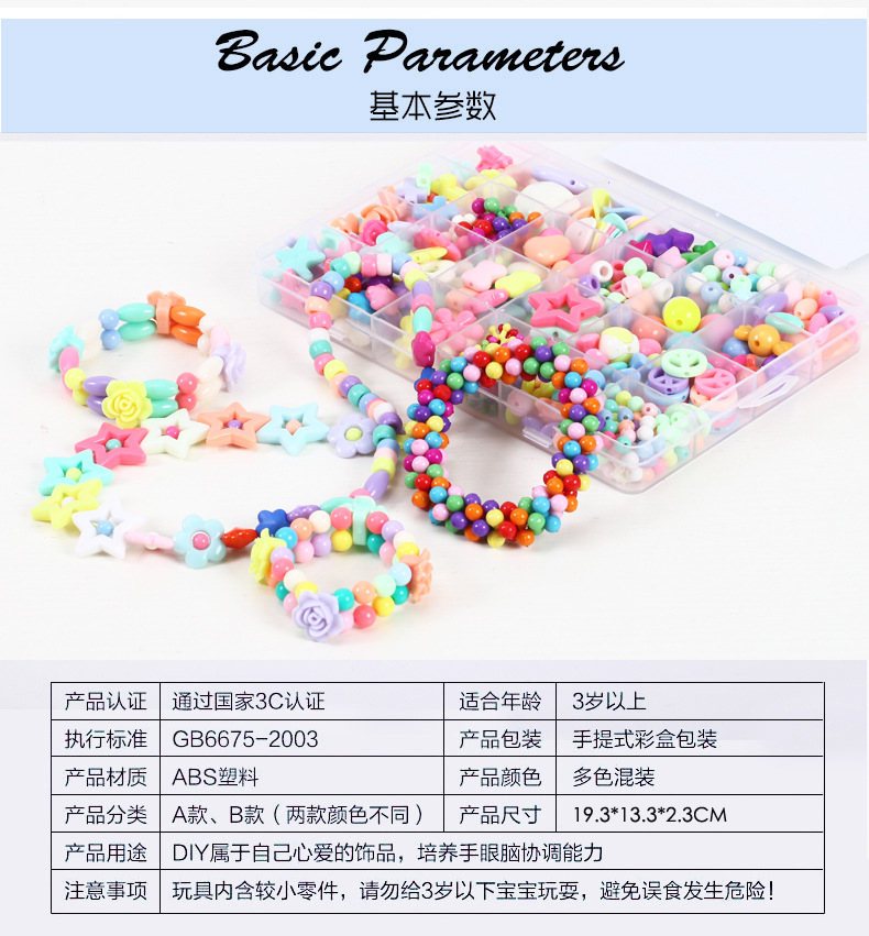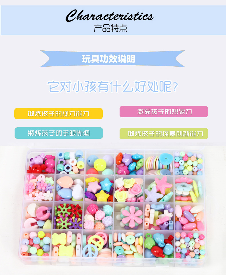 Package includes: 1 box of diy beads in children