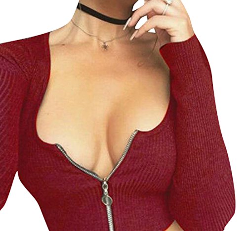 -. Title : WAYA- 婦人用セクシーなソリッドジップフロントロングスリーブシャツ・ブラウスの良い収穫トップ