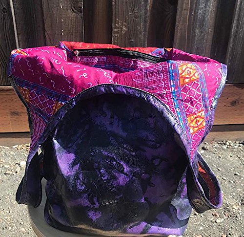 Handmade Genuine Leather Tote Large Bag with Ethnic Fabric, African Handbag