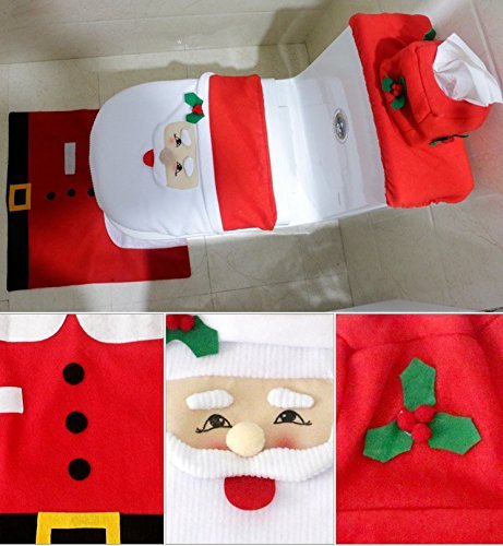 -. Title : Vktech 3PC Santa Claus Toilet Seat Cover and Rug Bathroom Set Christmas Decoration