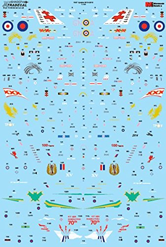 Studio : XtraDecal Publisher : XtraDecal Product Description Decals for 13 aircraft. Eurofighter EF-2000A Typhoon FGR.4 ZJ925/DXI XI(F) Sqn 100th Anniversary; Wg. Cdr C. Layden with black fin RAF Coningsby; Typhoon FGR.4 ZJ946 EB-A 41(R) TES Sqn Flt Lt D. Forbes RAF Coningsby standard scheme; Typhoon FGR.4 ZK315 41(R) Sqn 100th Anniversary Wg.Cdr S.A.Berry RAF ConingsbyTyphoon FGR.4 ZK344/H II(AC) Sqn Wg. Cdr R.G. Elliott RAF Lossiemouth standard scheme; Typhoon FGR.4 ZK342 6 Sqn with desert camouflage on fin and spine Wg.Cdr. Mike Baulkwill RAF Lossiemouth 2014; Typhoon FGR.4 ZK343/BX 29 Sqn black fin with Squadron logo Flt.Lt. Noel Rees RAF Coningsby 2014; Typhoon FGR.4 ZK348/FN 1Sqn Wg.Cdr.Mark R.Flewin RAF Lossiemouth; Typhoon FGR.4 ZK308 TP-V 29 Sqn D-Day stripes; Typhoon FGR.4 ZK349 GN-A 29(F) Squadron Flt Lt B. Westoby-Brooks RAF Coningsby in markings carried by Hurricane of 249 Sqn flown by Flt Lt E.J.B.Nicholson VC, the only VC in the Battle of Britain; Typhoon FGR.4 ZK353 /BQ 29(F) Sqn 100th Anniversary. Flt Lt Jonny Dowen with ruby red fin, RAF Coningsby; Tornado GR.4 ZA412 617 Sqn 70th Anniversary Wg.Cdr.D.S.Arthurton/Fg.Off R.D.Hartley RAF LossiemouthTornado GR.4 ZA461 XV(R) Sqn 100th Anniversary; Wg. Cdr Jon Nixon/Sqn Ldr Conan Mullineux with red fin RAF Lossiemouth; Tornado GR.4 ZA456 9 Sqn 100th Anniversary; Wg. Com I.J.Sharrocks/Flt Lt A.H.Lock black fin RAF Marham. 0