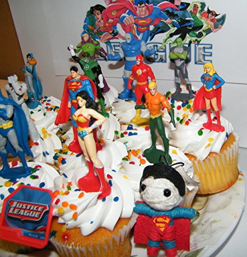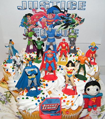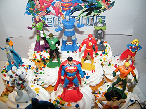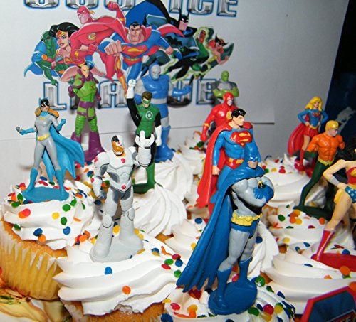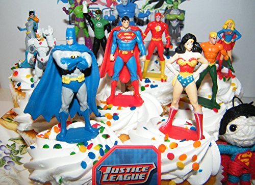 This fun cake topper set of 14 includes 12 Justicel League Figures, DC Doll, JL Ring!