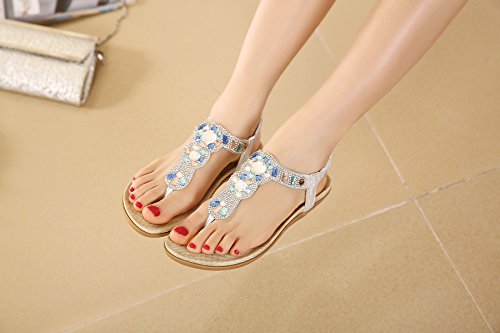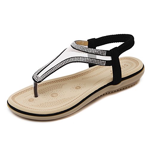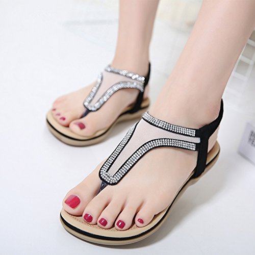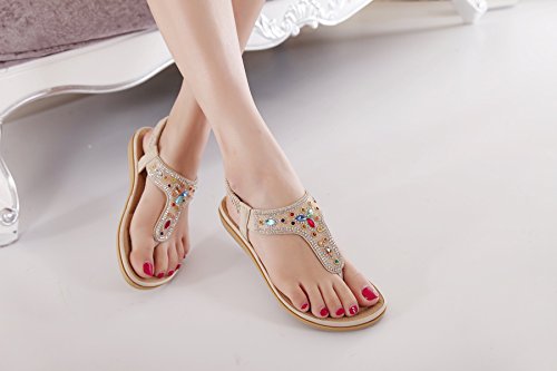 Binding : Apparel Product Description Features: Item Type: Flat sandals Heel Type: Flat with Style: Leisure Back Counter Type: Back Strap Closure Type: Slip-on Decorations: Rhinestones Package: 1 (pair) x Sandals Perfect for beach, clubwear, holiday, dress and many other occasions. Size: Here is the size between US and Asia. US 4.5=Asia 35=Heel to Toe(cm) 22.5 US 5.5=Asia 36=Heel to Toe(cm) 23 US 6=Asia 37=Heel to Toe(cm) 23.5 US 7=Asia 38=Heel to Toe(cm) 24 US 8=Asia 39=Heel to Toe(cm) 24.5 US 8.5=Asia 40=Heel to Toe(cm) 25 US 9=Asia 41=Heel to Toe(cm) 26 Please choose the size according to your foot length.if you do not know your size,please contact us for your size.Thanks. 0