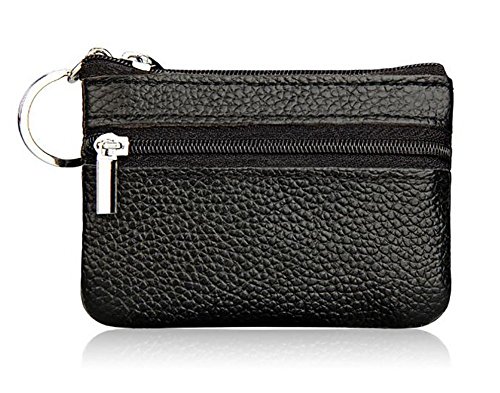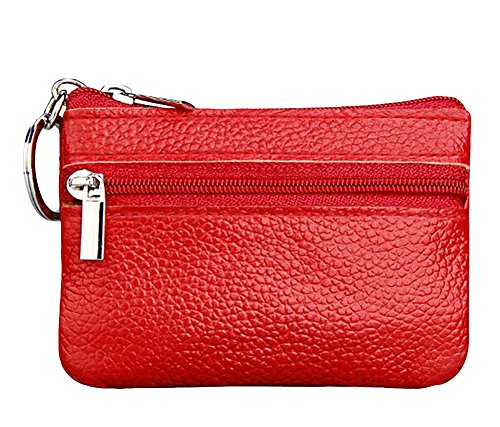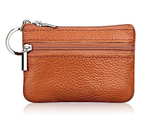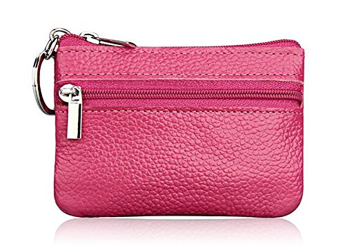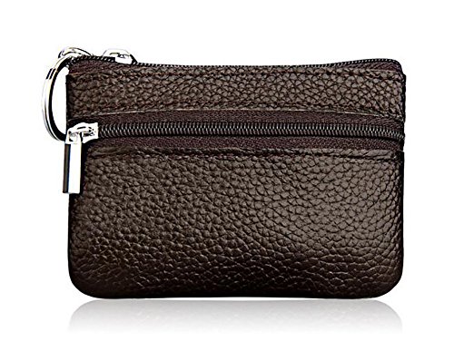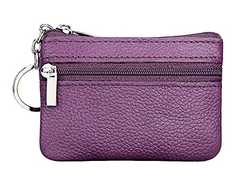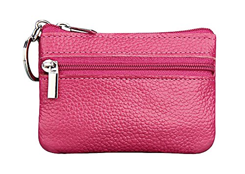 | ETIAL Womens Genuine Leather Zip Mini Coin Purse w/ Key Fob |