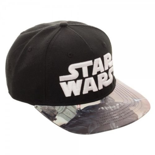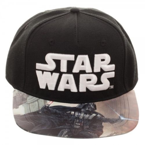 Product Description Star Wars Darth Vader Vinyl Printed Flat Bill Adjustable Hat. Deasign feature movie character Darth Vader printed on a vinyl flat bill along with classic Star Wars logo embroidered on the front panel. 0