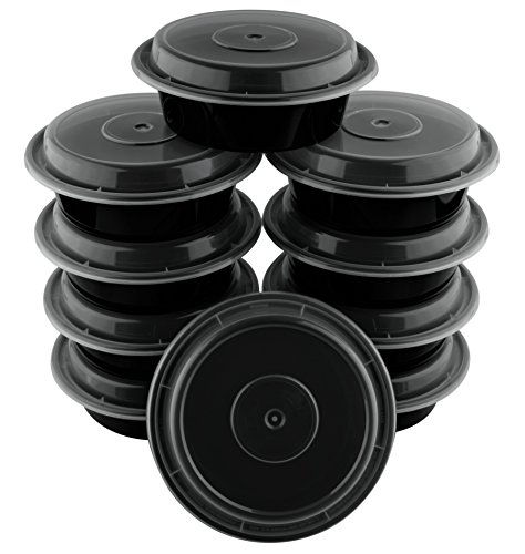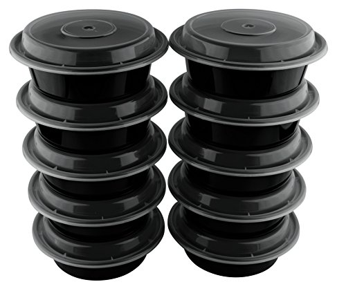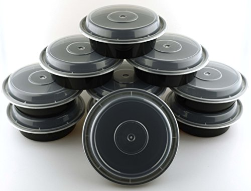 Green Direct Excellent Microwave Safe 5 Inch, 16 Oz. Round Food Containers with Lids/bento Box/lunch Tray with Cover, Black Bottom with Clear Cover. (10, 5 inches, 16 oz.)