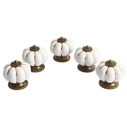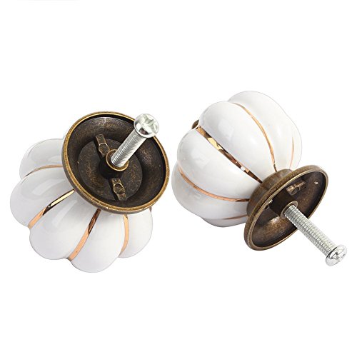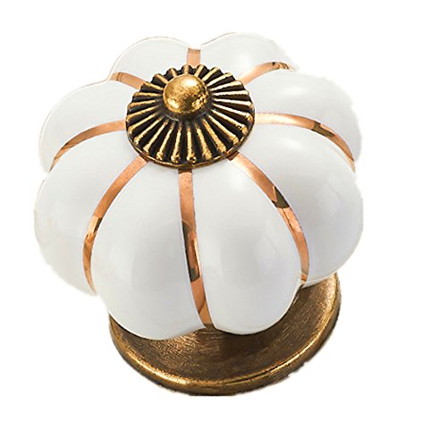 Features: Durable,useful,beautiful,elegant,easy to install and clean. Unique pumpkin shape show the classic vintage style. Single hole knob,screws are provided for installations. Specification: Material:Ceramic material and copper alloy Pumpkin/ Rose diameter: 35mm Knob height:40mm Base diameter:25mm Knob weight with package:720g Package: 10x Pumpkin Knobs(40mm) 10x Screws 0