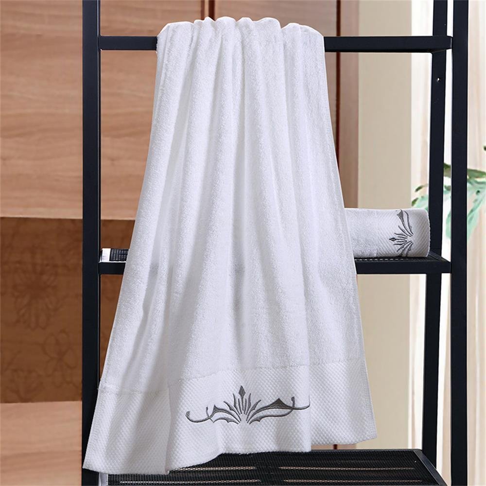 The hotel type bath towel is bigger than usual size, and it wraps up the bath-rising body completely.