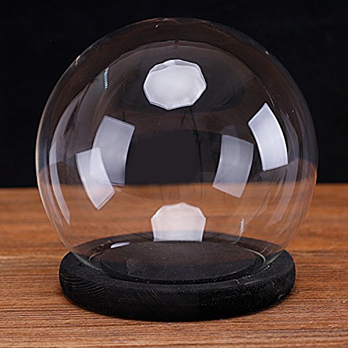 Clear Glass 6-Inch Terrarium & Keepsake Display Globe with Black-Stain Wood Base