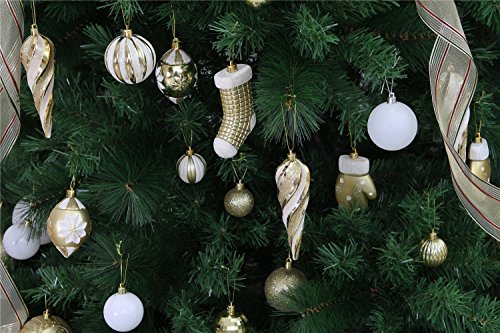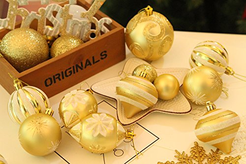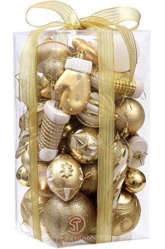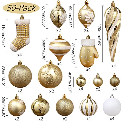 Sea Team 50-Pack Assorted Shatterproof Christmas Ball Ornaments Set Decorative Baubles Pendants with Premium Gift Wrapping Ribbon for Xmas Tree (Gold)