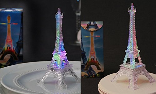 Studio : Fashioncraft Publisher : Fashioncraft Binding : Kitchen Product Description These replicas of the iconic Eiffel Tower are highly detailed and lighted! One measures 10" high x 4" square at the base and the other is 5" high x 2 1/4" square at the base. They are battery operated, and have LED lights that constantly change color and intermittently flash. The on-off switch is at the base of the Eiffel Tower. When "off" it's simply a clear replica. Batteries are included and are replaceable. Beautifully boxed in individual,full-color boxes. Be reminded of Paris every day. Made of lightweight plastic, and highly detailed architecturally. Perfect for your next French themed party! 0