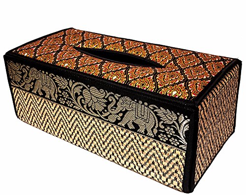 TISSUE BOX "A" cover case Sheath natural Reed wicker ECO sustainable material plush SILK Trim Elephant Side (B Black)
