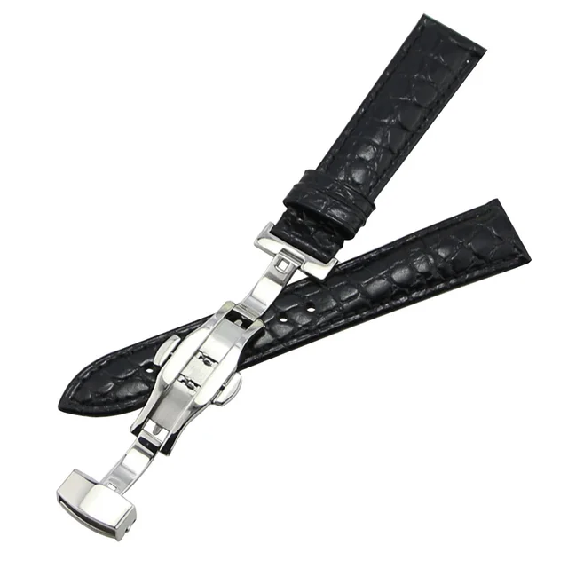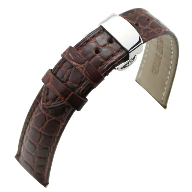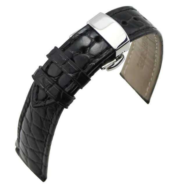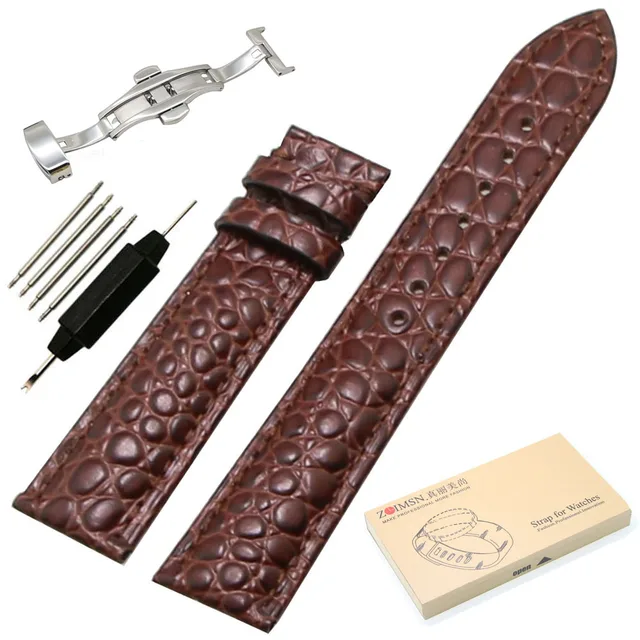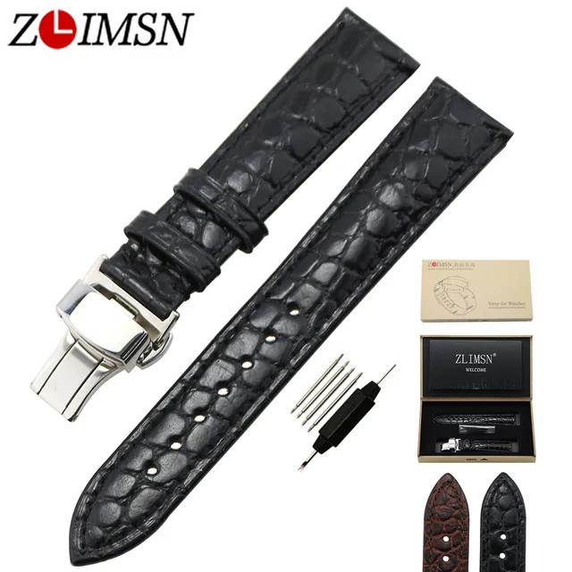 ZLIMSN 18 미리메터 20 미리메터 악어 곡물 정품 가죽 시계 밴드 교체 블랙 브라운 자동 나비 버클 손목 벨트