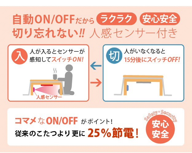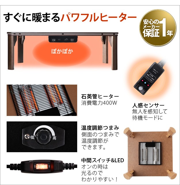 【人感センサー付】ファンレス石英管ヒーター(400W・中間スイッチ式)