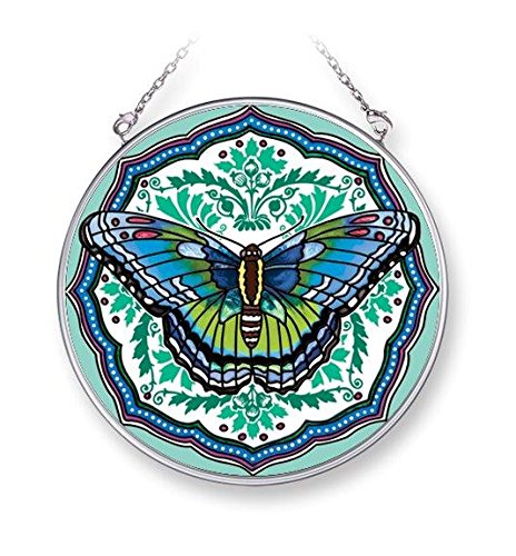 Amia 42072 4-1/2-Inch Hand Painted Glass Circle Suncatcher, Medium, Colorful Butterfly Design