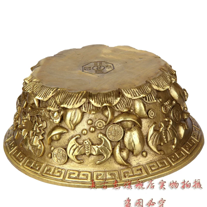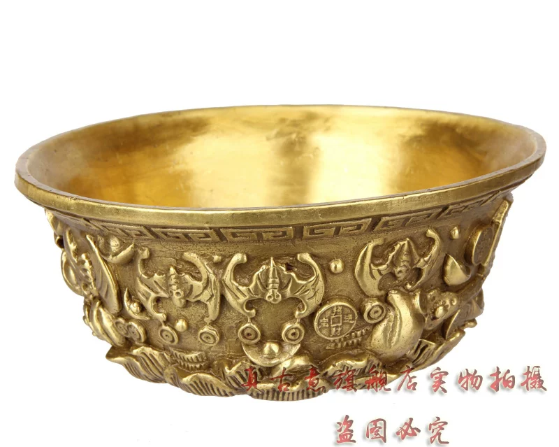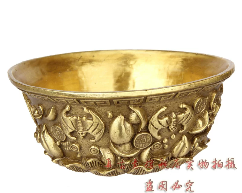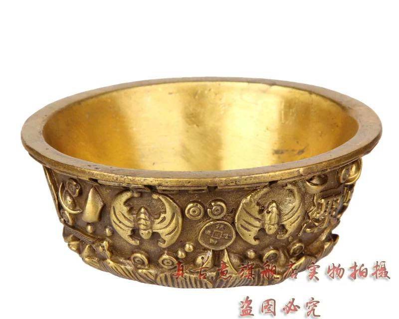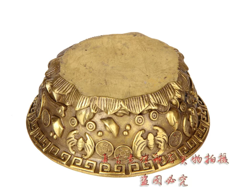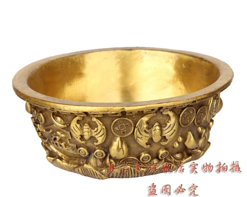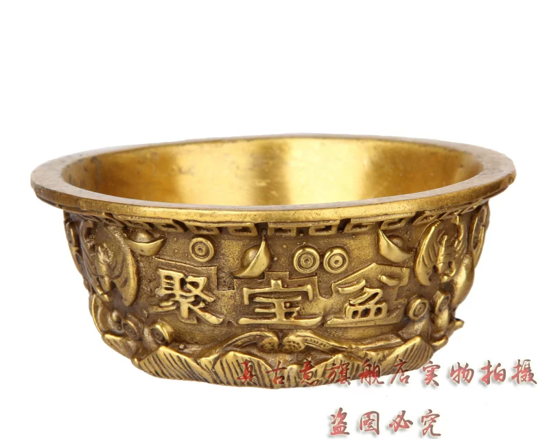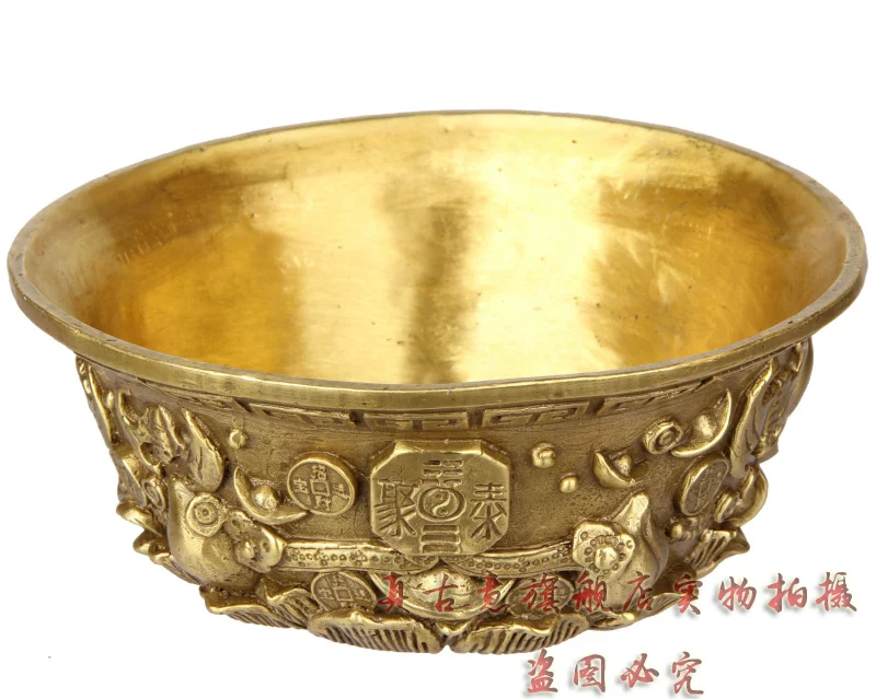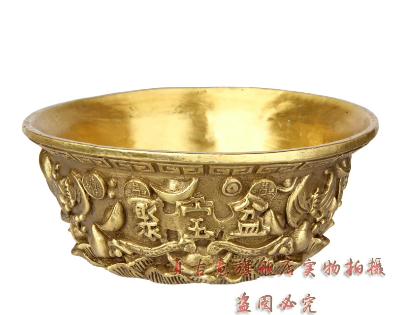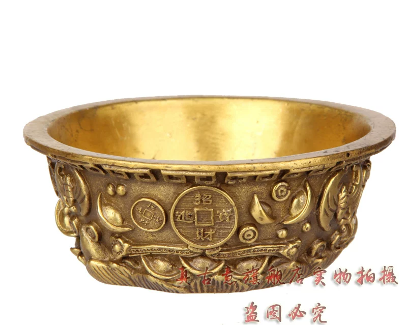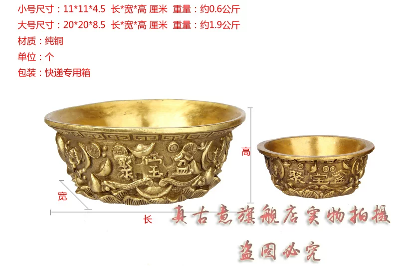 聚宝盆是财神宝物,可招财,聚财,因此也派生出一系列与之有关的吉瑞文化极品精工青铜器五路财神聚宝盆招财聚财旺财守财乃道教秘传聚宝盆,催财,放在房子中的财位上或者放在神案及明亮之处。盆内放上现代钱币或金条或金砖(黄铜的即可),有极强的催财旺财作用,如果不知道家中财位者,可拍下宝贝后留言由店主单独告知。如五路财神全铜聚宝盆,刻有五路财神,赵公明居中,招宝、纳珍、招财、利市四个偏财神分列左右,称之为“五路财神”。五路进财. 和气生财,吸纳五行之气、广纳八方之财,里面也可放金银珠宝或现代钱硬币,可招金玉满堂,大富大贵...五路财神之藏风聚气、五行调和的聚宝盆,也可做香炉,可使您在缕缕香气中,聚集开运纳财之福。这款聚宝盆造型十分别致热闹,将堆满元宝珍珠等宝物的上盖打开,圆鼓鼓的盆内,可放置五帝钱以聚财气,还可驱邪化煞。